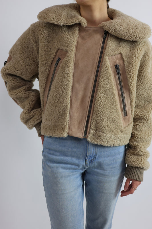 UNISEX CROPPED SHEARLING & NAPPA LEATHER JACKET