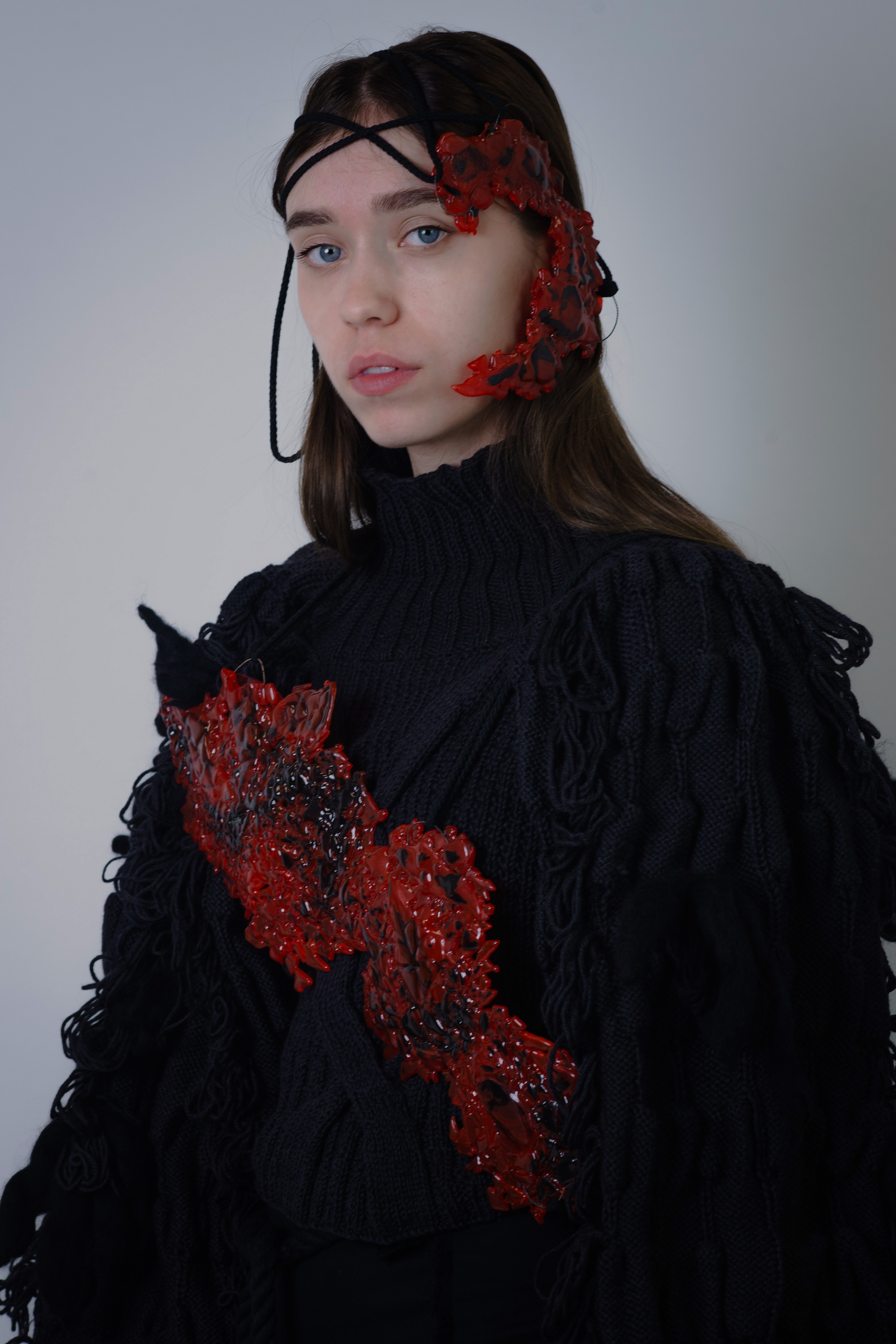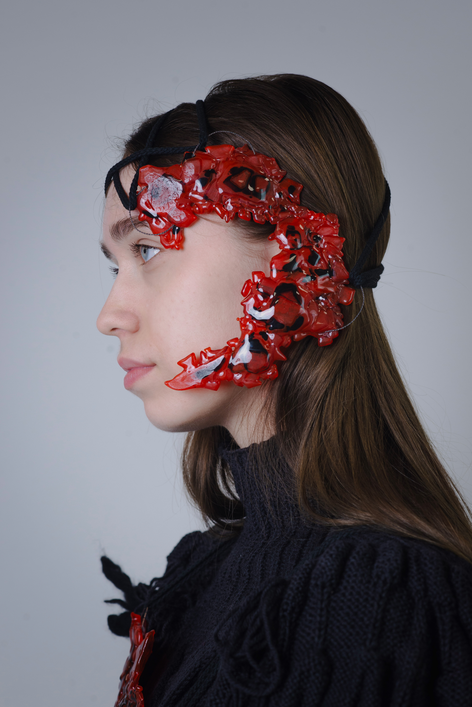 These accessories are made from individual pieces of glass that are fused together to create the sculptural shape. Inspired by outburst of lava which is mirroring an emotional outburst where frustration and fury can no longer be contained.